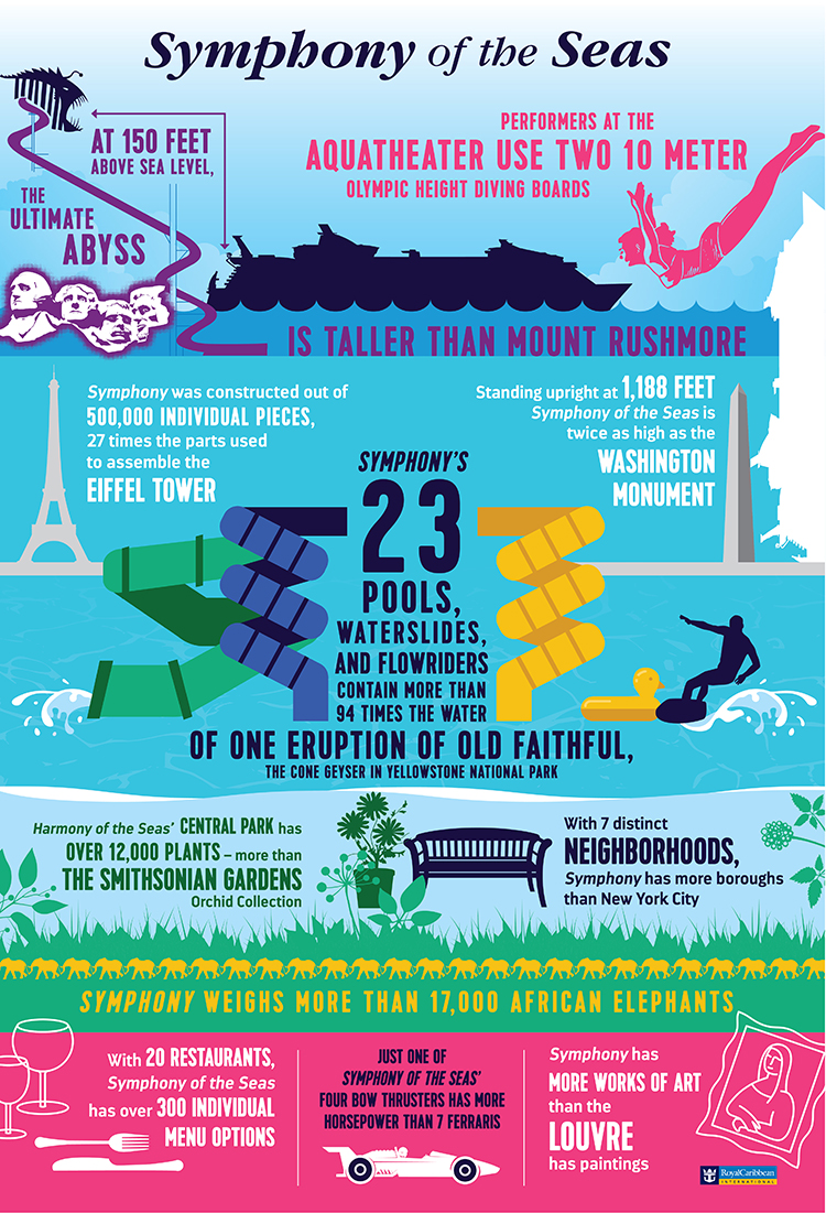“We set out to create a new level of vacation adventure and deliver the ultimate escape for families of all shapes and sizes. Symphony will introduce the most cutting-edge, customizable, and digitally-enhanced experiences in the Royal Caribbean fleet.”
