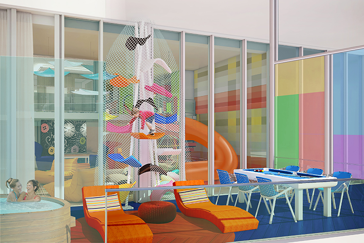 Symphony will introduce the world’s most adventurous and interactive family suite. The next generation of family accommodations, the two-level Ultimate Family Suite is a dream come true for kids of all ages and will debut eye-popping features, including: an exclusive slide from the kid’s only bedroom to the living room below; a floor-to-ceiling LEGO wall, an air-hockey table and hidden nooks for chilling.