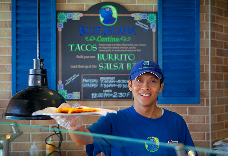 BlueIguana Cantina: a complimentary poolside Mexican eatery where guests can enjoy authentic freshly made burritos and tacos on homemade tortillas, as well as an elaborate toppings and salsa bar.