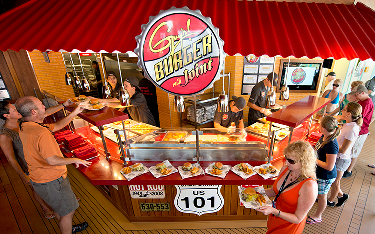 Guy’s Burger Joint: a free-of-charge poolside venue developed in partnership with chef and restaurateur Guy Fieri serving hand-crafted burgers and fresh-cut fries enjoyed amidst a décor that celebrates the chef’s California roots and love of car culture.