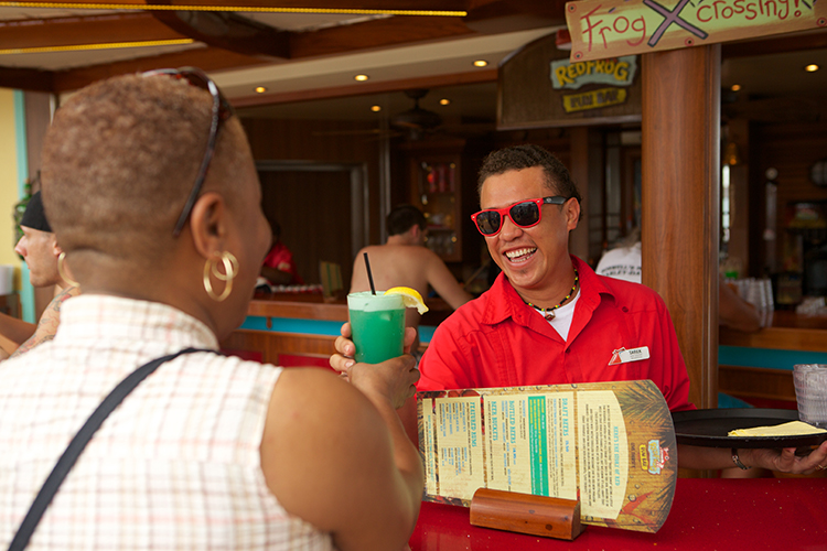 RedFrog Rum Bar: a poolside watering hole offering the quintessential Caribbean vacation vibe with refreshing Caribbean rum-based frozen drinks and beers, including Carnival’s own private label draught brew, ThirstyFrog Red.
