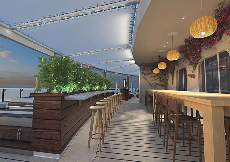 Each of the designers will bring the best of their firms ideas to the vessel and provide diversity throughout the ship, using the principle of the Modern Romance of Sailing as the guiding star to a cohesive vision. Within the brand ethos, modern is representative of a contemporary holiday aesthetic paired with romance, which offers a nod to a love of the historical glamour and sophistication of a sea voyage.