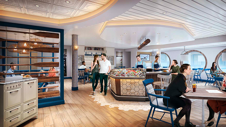 Every palate will be pleased when popular Royal Caribbean restaurants join a refreshed Chops Grille steakhouse. Guests can go for Jamie’s Italian to get a taste of celebrity chef Jamie Oliver’s rustic Italian dishes made with seasonal ingredients and homemade pastas crafted in-house daily. Foodies angling for fresh seafood and ocean views in a casual setting will find New England-inspired dishes, from lobster and crab claws to local fish and just-shucked oysters, at Hooked Seafood. Also new on board will be Starbucks, with an extensive menu of drinks and pastries.
