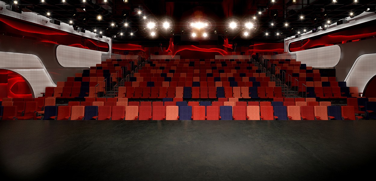 To accommodate its variety of entertainment opportunities Virgin Voyages created The Red Room– designed by renowned architects WorkAC and theater consultants Auerbach Pollock Friedlander as the first transformational multi-form theater at sea. It will transform into four different configurations – including traditional Proscenium stage, to alley stage used in fashion shows, to a dance flat-floor configuration and finally a unique reverse stage setup.