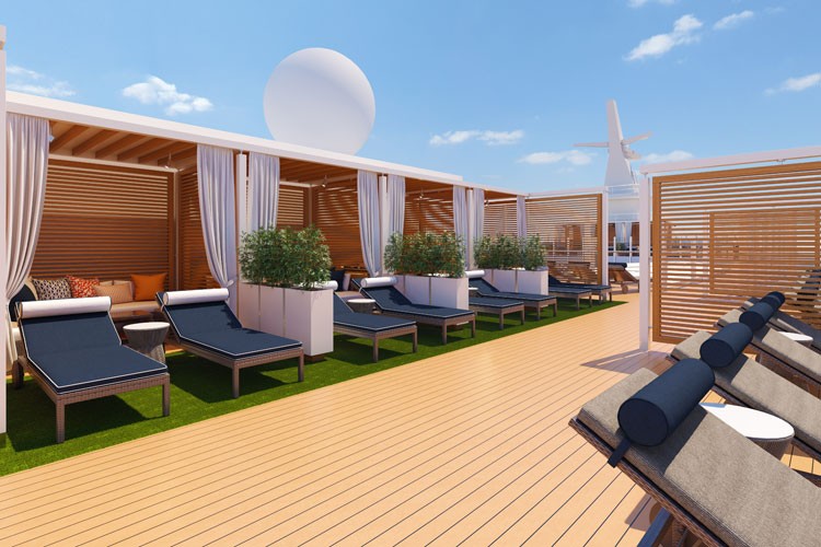 Located on the ship’s highest deck, Loft 19 is a brand new concept for Carnival Cruise Line – a secluded retreat modeled after the world’s finest resorts with full bar service, a private pool surrounded by sun loungers and spacious cabanas, available for rent. Cabanas are fully stocked with beverages, plush robes and chilled towels, fresh fruit, lunch delivery and dedicated concierge service. Carnival Excel suite guests will receive priority when reserving Loft 19 cabanas.