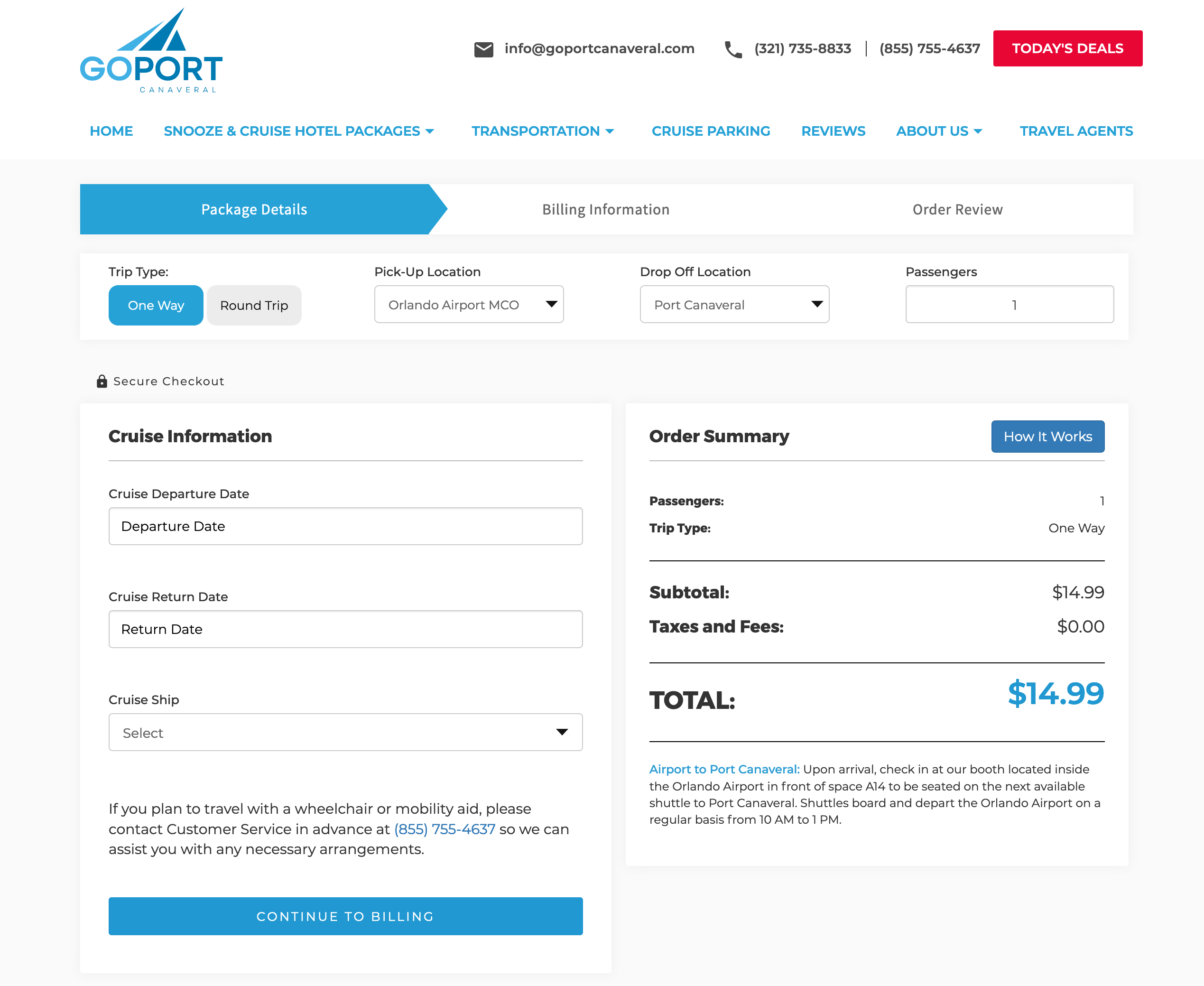 Go Port is a 4-star rated cruise ship transfer service that provides one-way and round-trip luxury coach rides to and from Port Canaveral. For only $14.99 per cruiser each way, it’s much more affordable than the typical taxi service or booking transfers through your cruise line. With taxis costing upwards of $120 and cruise lines charging about $35 per person each way, using Go Port will save you over 50%.