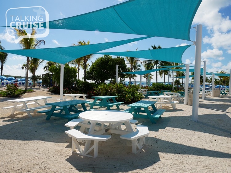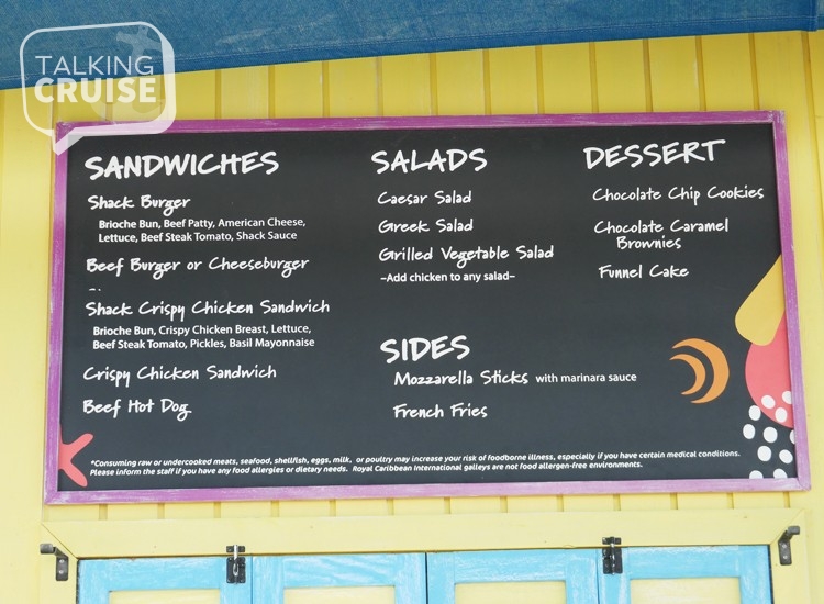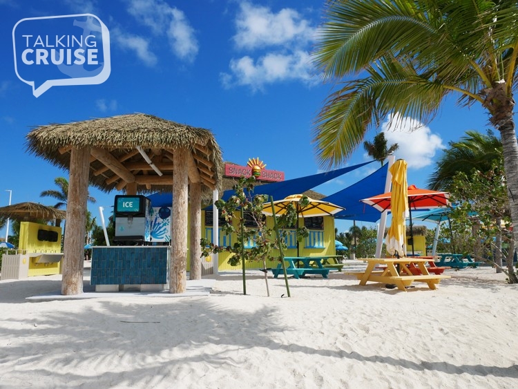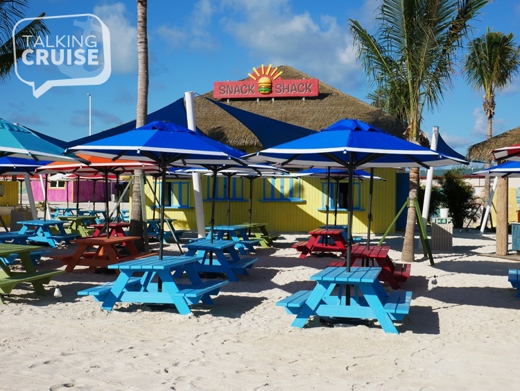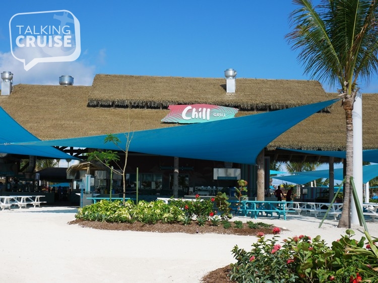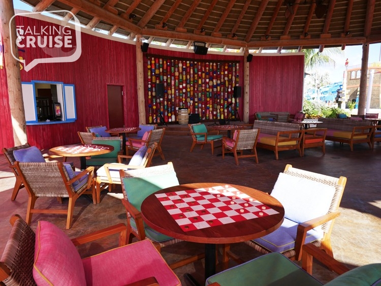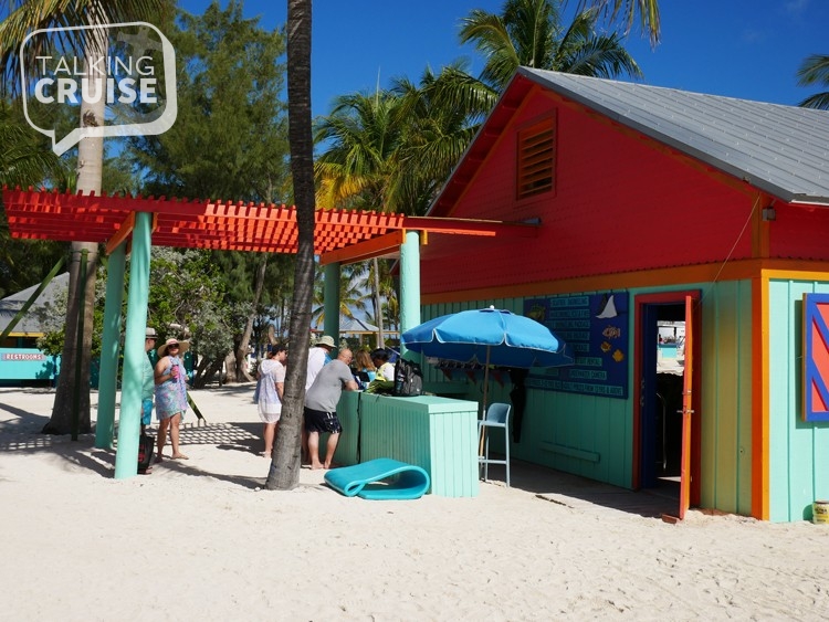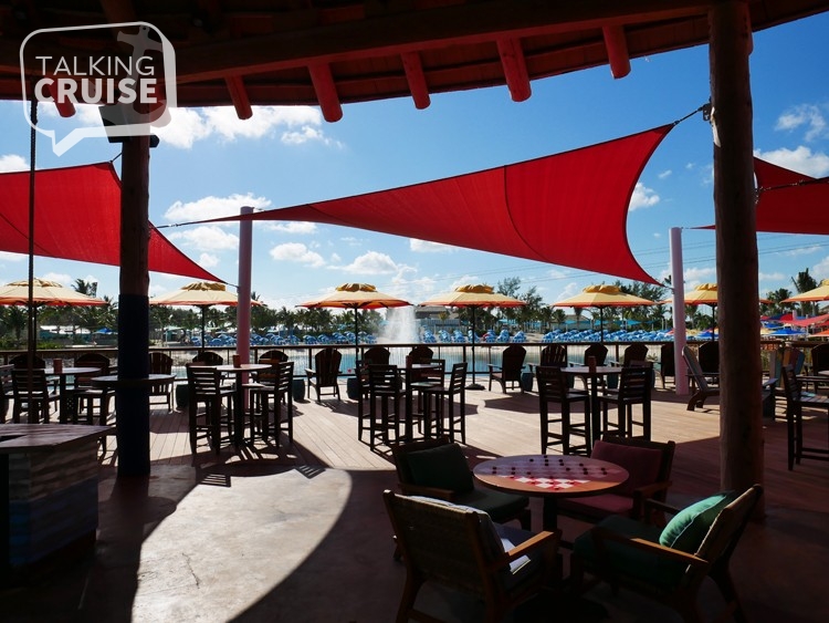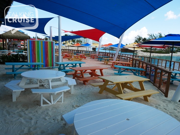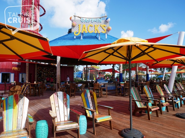 Located towards the main island entrance, Captain Jack’s bar is a fun spot to enjoy a drink from the full-service bar along with some wings & fries for extra cost. While you’re there, catch some live entertainment, play a table-top games of checkers or Jenga and take in the views of people zip lining over the Harbor Lagoon, but don’t stay too long or you may watch your ship leaving without you.