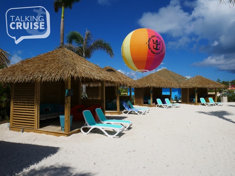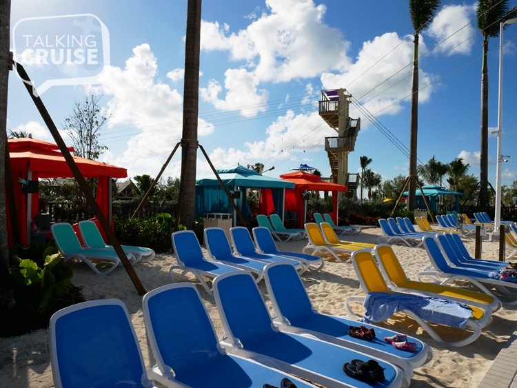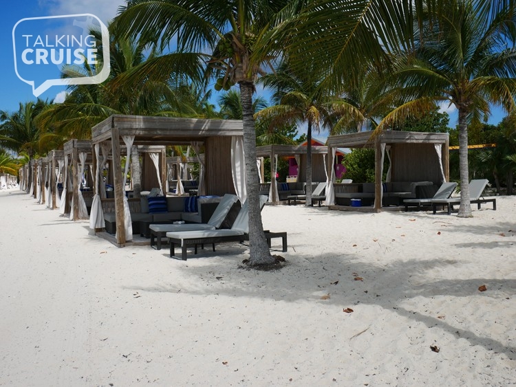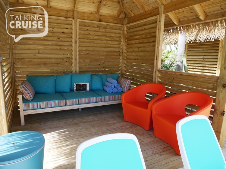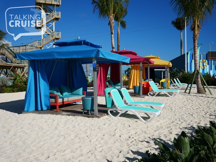 Located around a cove, the Chill Island Cabanas are close to food and drink and are complete with sofa, sun loungers and chairs a dedicated attendant, USB power outlets and cooler stocked with bottled water. Pricing varies between cruise departure dates.