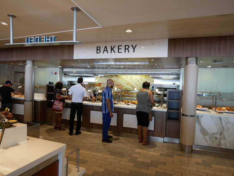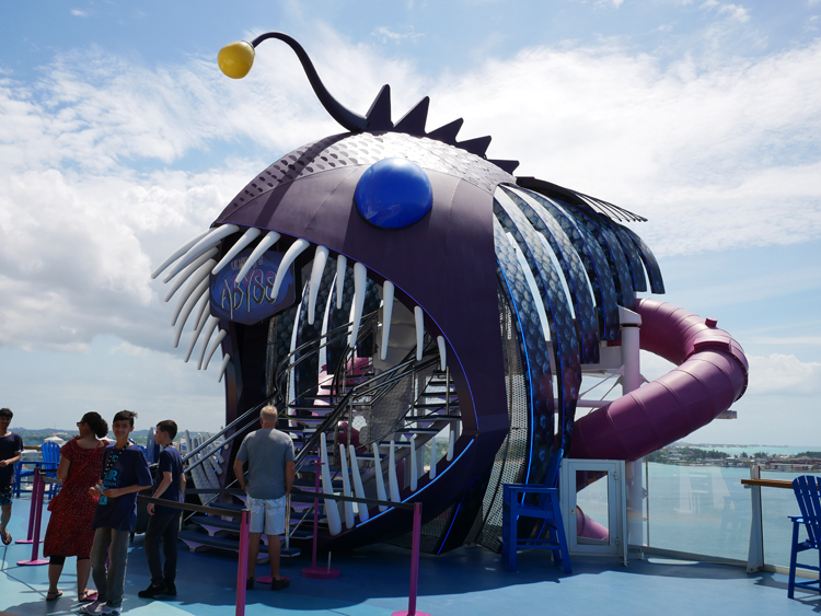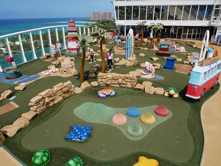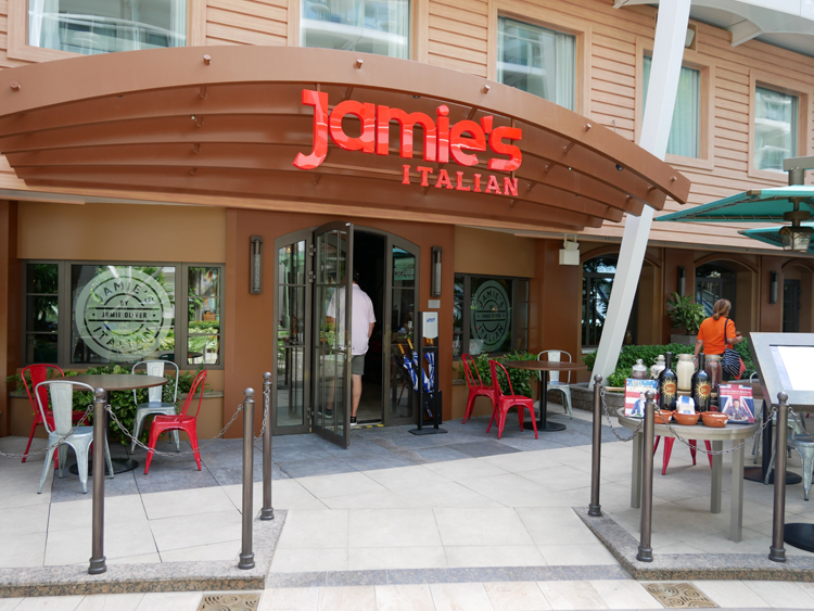 A big ship equals even more dining choices. Starting with the three-story main dining room, other complimentary dining choices include Sorrento’s Pizzeria, Café Promanade, Vitality Café, Boardwalk Dog House, Park Café, Solarium Bistro, Mini Bites, Windjammer Marketplace and Coastal Kitchen for suite guests. For something a little different, there are several specialty dining venues including Izumi Hibachi & Sushi, Johnny Rockets, Sabor, Jamie’s Italian, Chops Grille, 150 Central Park and Wonderland.