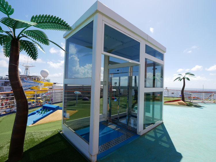 In addition to a selection of accessible staterooms located on every deck, Carnival Sunrise has great maneuverability for those in wheelchairs or scooters. Two special ADA elevators were added during dry dock, making the upper level of the Lido Marketplace as well as SportSquare and Mini Golf accessible to everyone. There are also lifts for the Serenity Pool and Tides Aft Pool.