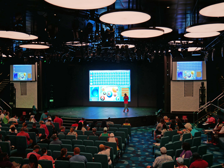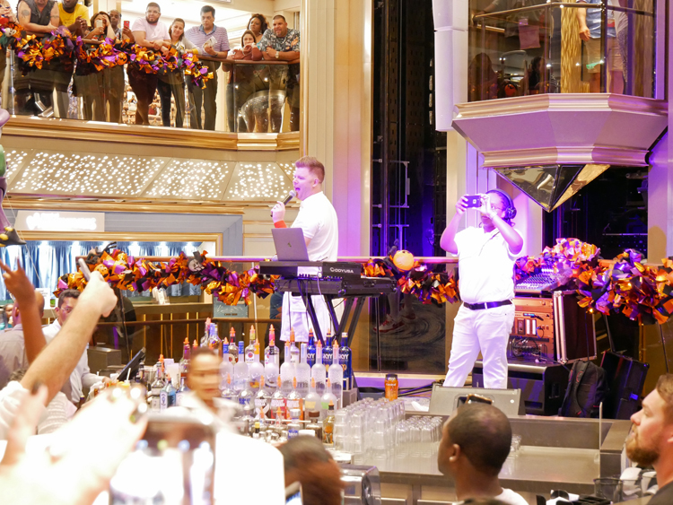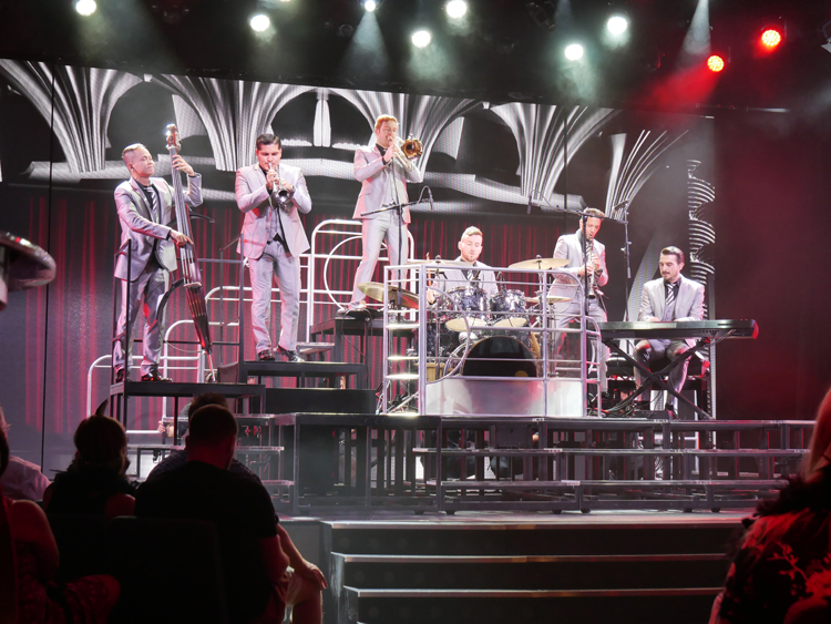 Carnival Sunrise features the line’s original Playlist Productions in the purpose-built Liquid Lounge. Each of the shows engages the audience with props, performers and special effects interwoven into the transformational floor seating. On my five night cruise, we experienced three shows. “Soulbound” was timely on our Halloween cruise and combined soulful hits with a macabre theme. “Vintage Pop” delivered one flashy performance after another with big band sounds from the live ensemble, multiple costume changes, dance numbers and strong vocals. “Latin Nights” turned up the heat with sultry performances and a dance club vibe.