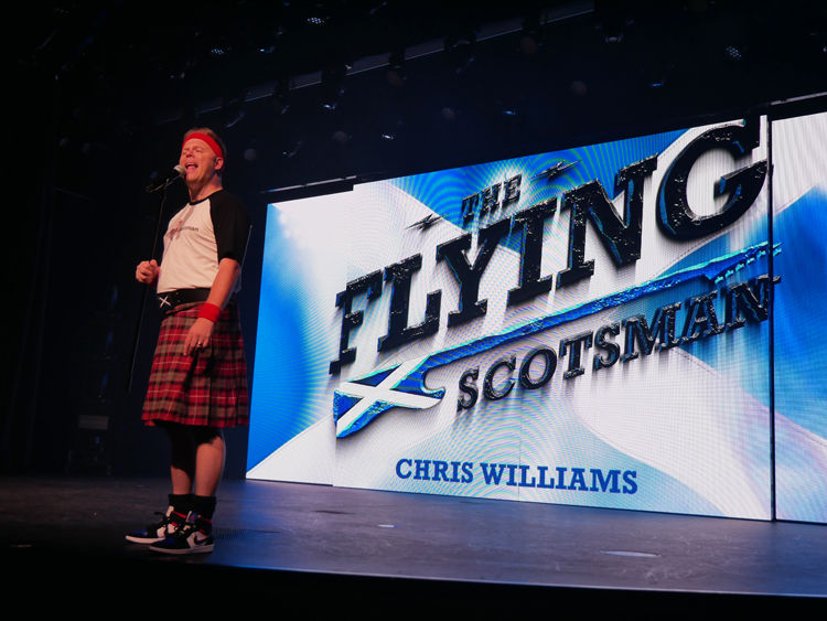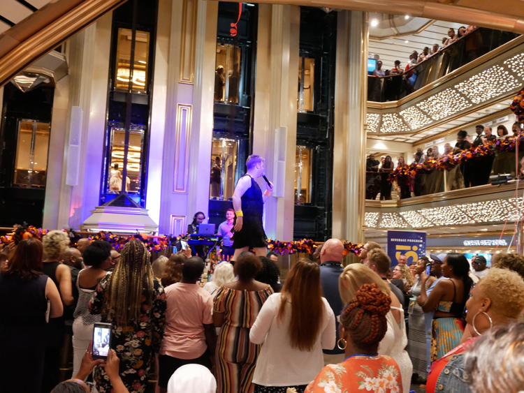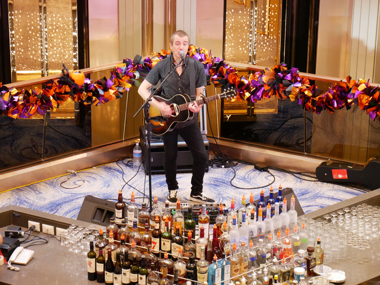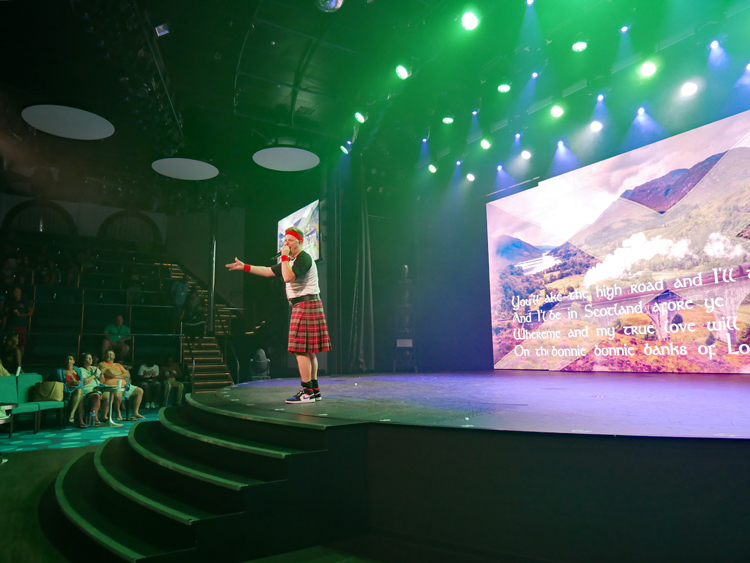 Cruise Director Chris Williams (aka “The Flying Scotsman”) not only has a plethora of fun activities planned onboard, he’s a first-rate entertainer all on his own. He can be seen almost every night in the ship’s atrium pumping up the gathered masses as he hosts after-show parties and events, on one evening even impersonating Tina Turner. Chris’ talents are highlighted in his very own one-man show (The Flying Scotsman) where he belts out rock classics and even an operatic melody.