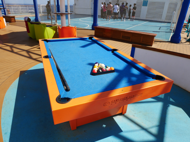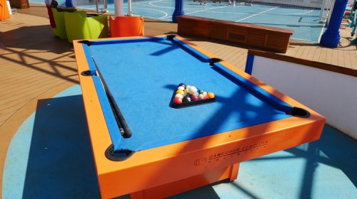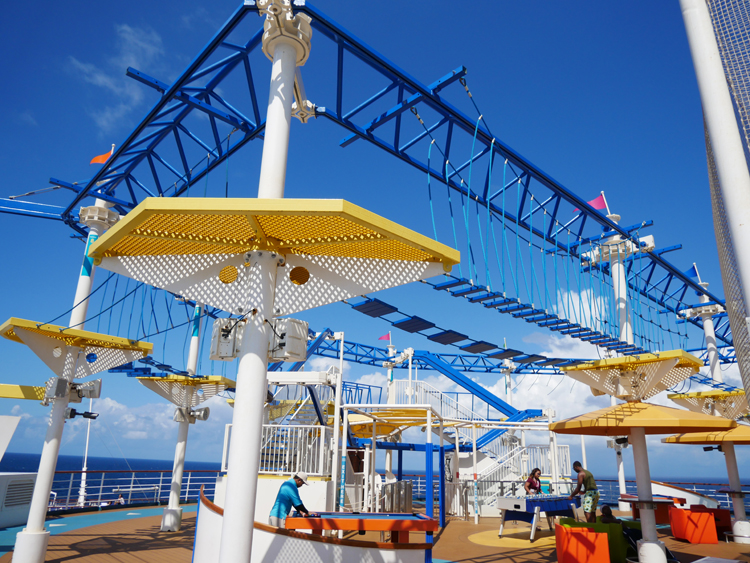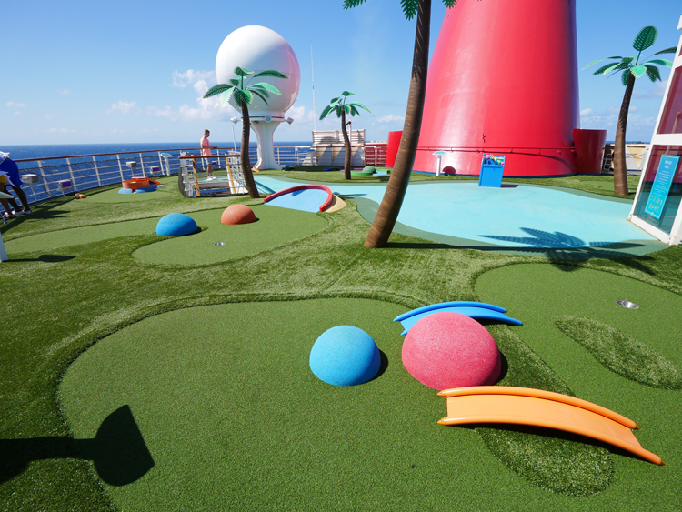 Carnival’s fleet are called “Fun Ships” for a reason and onboard Carnival Sunrise, activities abound seemingly everywhere. Indoors, you’ll find many of the Carnival mainstays onboard including Hasbro, The Game Show, three tiers of kid’s programs: Camp Ocean for kids 2-11, Circle “C” for teens 12-14 and Club O2 15-17, Seuss at Sea activities like the Seuss-a-palooza Parade and Story Time, Make it with Michael’s arts & crafts, Bingo, Karaoke, Warehouse Arcade and Sunrise Casino. Get out and enjoy topside fun starting with the Sailaway Deck Party, outdoor movies at the Seaside Theater, the mid-ship and aft pools located on Lido Deck and Carnival WaterWorks, featuring two fast slides and a splash area for smaller kids. You must experience the SportSquare complex offering hours of fun with games like foosball, billiards, cornhole, shuffleboard and basketball, plus the challenging SkyCourse ropes course, where you’ll get the best view on the ship as you maneuver through 10 different elements. Up one deck from SportsSquare and easy to miss, is the Mini Golf course.