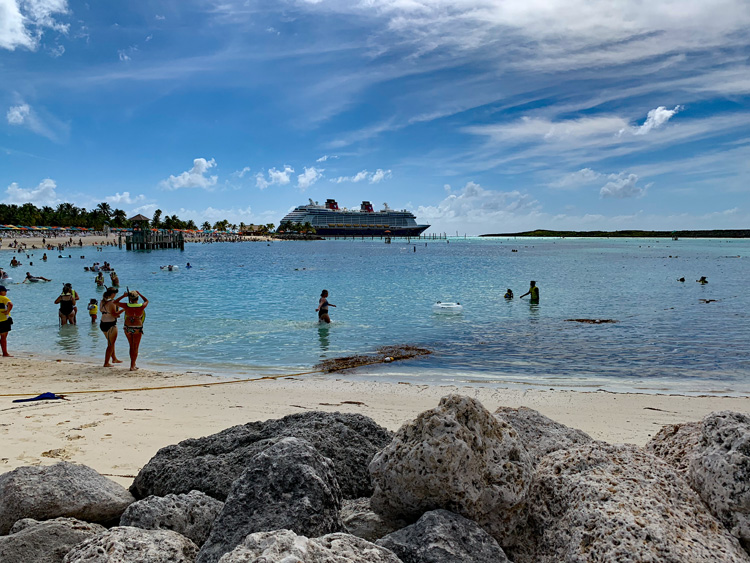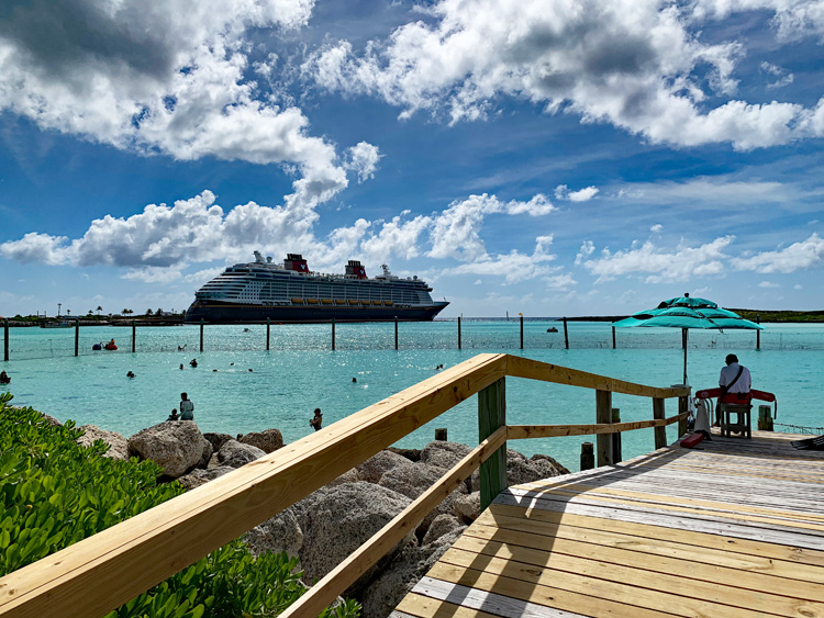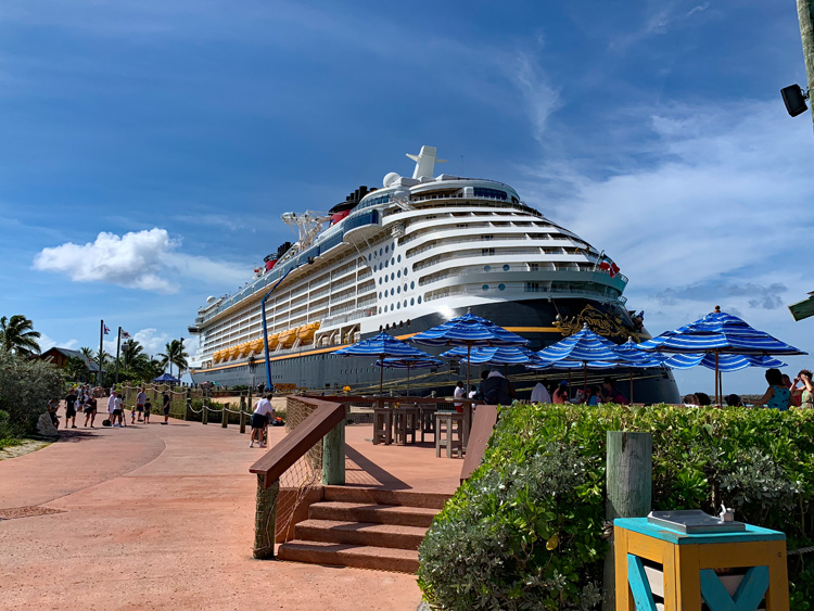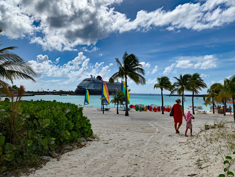 When you first go ashore to Castaway Cay, take a moment to appreciate your beautifully designed ship and grab those selfies, as this is the closest, you’ll get to a docked Disney ship without thousands of other cruise ship guests in port. Walking off is a breeze and you’ll find clearly marked signage to get you to where you want to go.