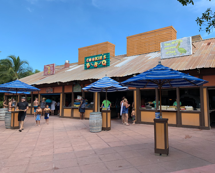 Located closest to the family beach area, the complimentary Cookie’s BBQ serves up a tasty lunch or snack and even soft-serve ice cream.