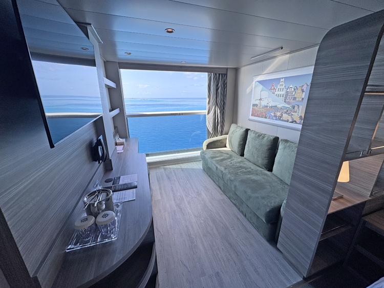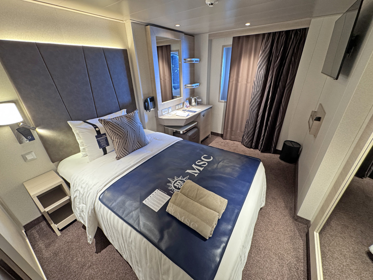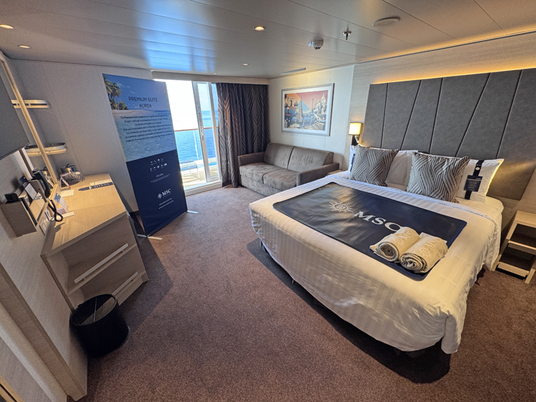 MSC Cruise has introduced several new types of accommodations for their World class ships. For the single traveler, solo rooms are offered as Studio Interior and Ocean View and not only are they designed for one guest, they are also priced far less than the typical cruise industry single supplement of 200%. Infinite Ocean View rooms with or without the Aura inclusive package perks, offer a slide-down window with floor-to-ceiling views in lieu of a traditional balcony. There’s also Promenade View staterooms and suites with balconies that face inwards towards the World Promenade and or with ocean view. The new room types complement the standard offerings within the interior, ocean view and balcony stateroom categories.