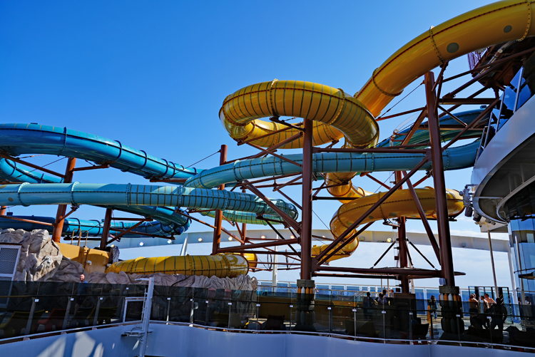 If there’s one thing I look forward to on a cruise ship it’s being reminded I’m at sea and not just in a very large hotel. Many venues within the World Galleria offer a connection to the ocean with large windows and in some instances outdoor seating areas. The new Eataly specialty restaurant on Deck 8 features al-fresco dining, and you can find outdoor seating at both the Elixir Mixology Bar and The Loft Comedy & Live Music venue. The Panorama Lounge located aft on decks 6 & 7 has a wonderful wake view and in the ship’s large Aurea Spa, you can even enjoy time in the sauna with a view. Probably one of the most impressive spots on the entire ship is World Promenade. While the concept is not new to cruising, the ambiance is inviting with places to eat, enjoy a premium early morning coffee or drinks while cheering on your favorite teams in the All Stars Sports Bar or just lounging and watching the world go by.
