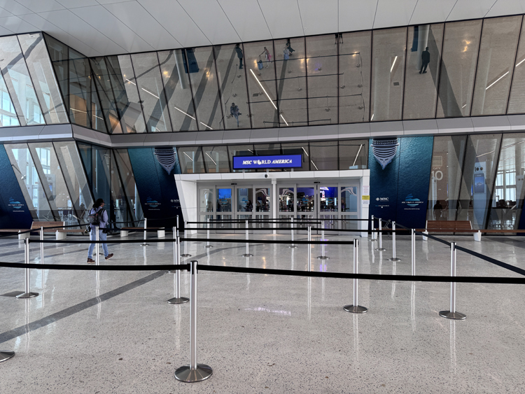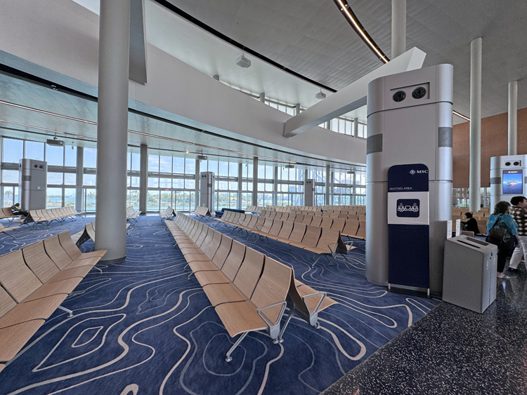 The arrival of MSC World America was planned to coincide with the completion of MSC Cruises purpose built Terminal AA at PortMiami. The construction of this cruise terminal, officially the largest in the world, was no easy feat and required months of dredging along the port’s channel. This terminal has the space to accommodate up to 3 ships at one time and 36,000 guests and also provides parking for up to 2,400 vehicles with easy direct access from the PortMiami bridge or tunnel in and out of the building. The interior is absolutely massive with ample seating and clear signage and biometric capabilities for easy check-in and boarding. With the size of the terminal, the trek to the gangway can be a long walk and fortunately MSC Cruises has installed moving walkways to assist with this. Biometrics are also used for debarkation, as guests will pass though electronic turnstiles to clear U.S. customs.