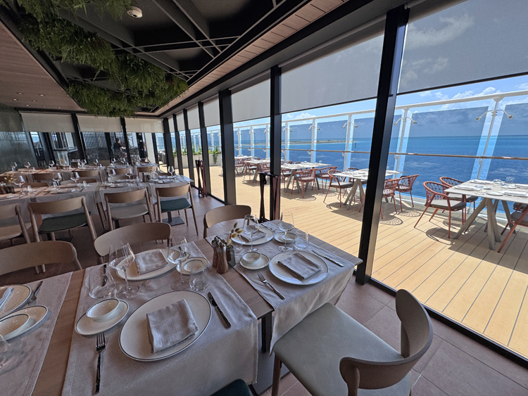 If there’s one thing I look forward to on a cruise ship it’s being reminded I’m at sea and not just in a very large hotel. Many venues within the World Galleria offer a connection to the ocean with large windows and in some instances outdoor seating areas. The new Eataly specialty restaurant on Deck 8 features al-fresco dining, and you can find outdoor seating at both the Elixir Mixology Bar and The Loft Comedy & Live Music venue. The Panorama Lounge located aft on decks 6 & 7 has a wonderful wake view and in the ship’s large Aurea Spa, you can even enjoy time in the sauna with a view. Probably one of the most impressive spots on the entire ship is World Promenade. While the concept is not new to cruising, the ambiance is inviting with places to eat, enjoy a premium early morning coffee or drinks while cheering on your favorite teams in the All Stars Sports Bar or just lounging and watching the world go by.